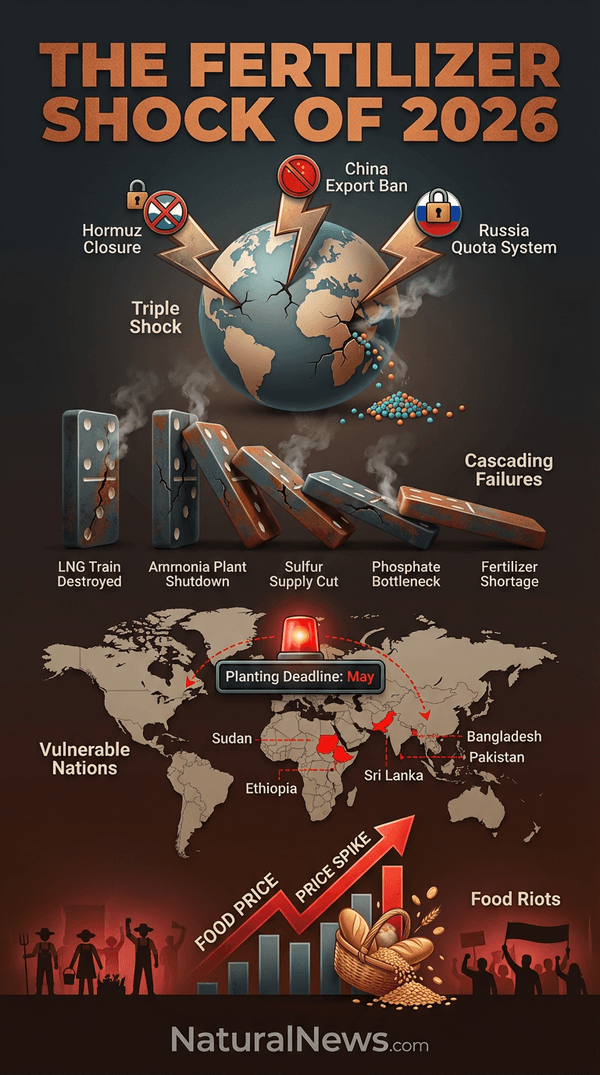We are watching a catastrophe unfold that was entirely predictable. The current fertilizer crisis is not a natural disaster — it is the direct result of globalist policies, financialization, and a just-in-time supply chain that prioritizes profit over food security. The triple shock — the closure of the Strait of Hormuz, China’s export ban, and Russia’s quota system — has already doubled urea prices in many markets, but the real story is how vulnerable countries have been left exposed by a system that values corporate margins over human lives. In my view, the mainstream media and international institutions are downplaying the severity because they have no solution that doesn’t challenge their own power structures.